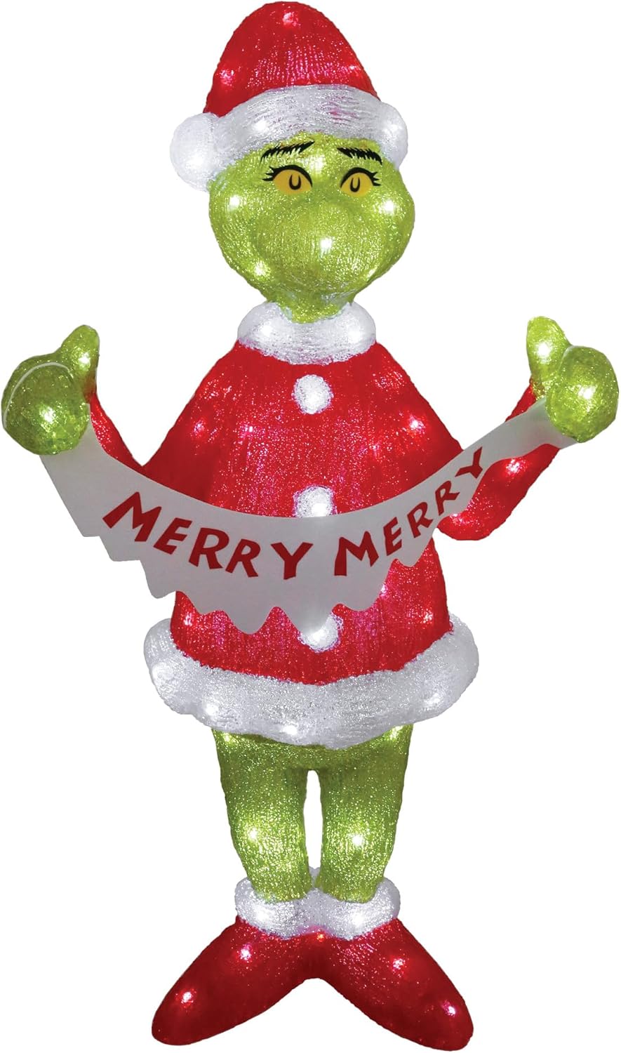 The Grinch will great your family and guests with Christmas cheer all season long with this light up LED acrylic beaded statue from Enesco. Great for indoor use or on a covered porch when plugged in a weather proof outlet.